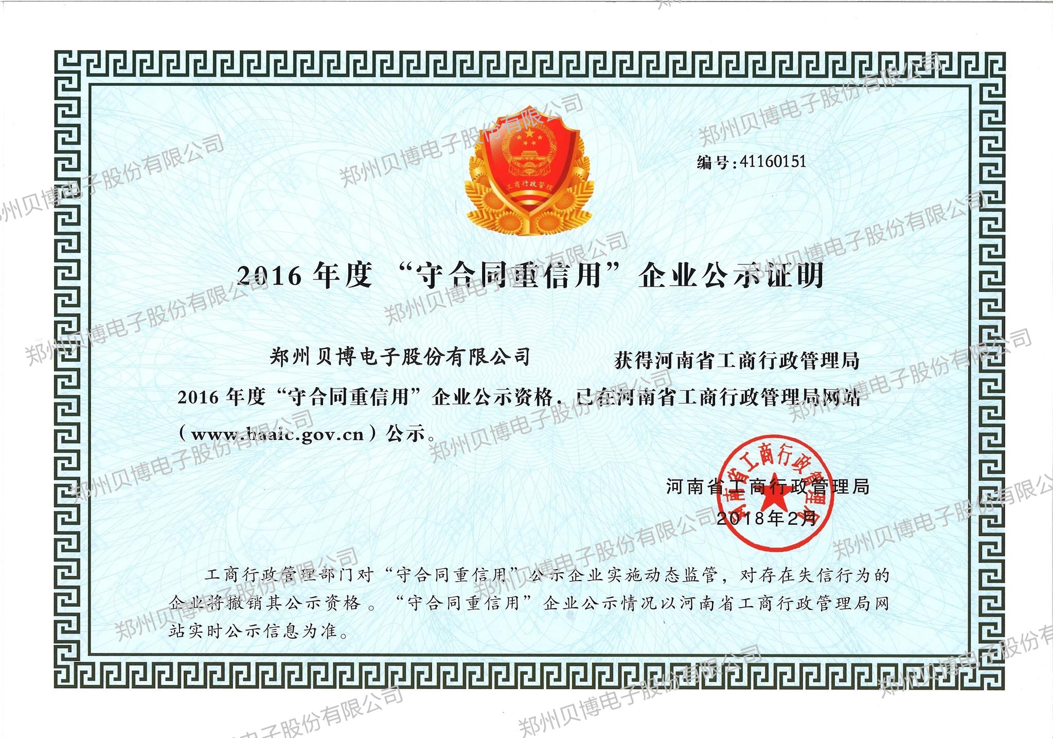 2016年度守合同重信用