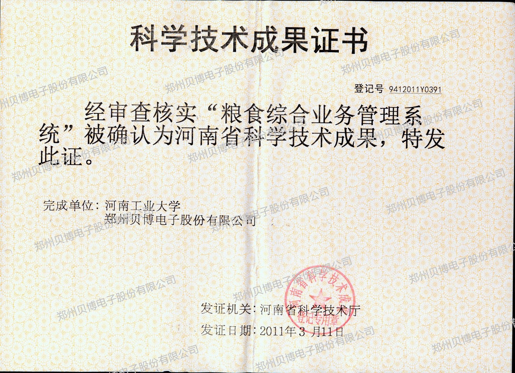 科技成果證書